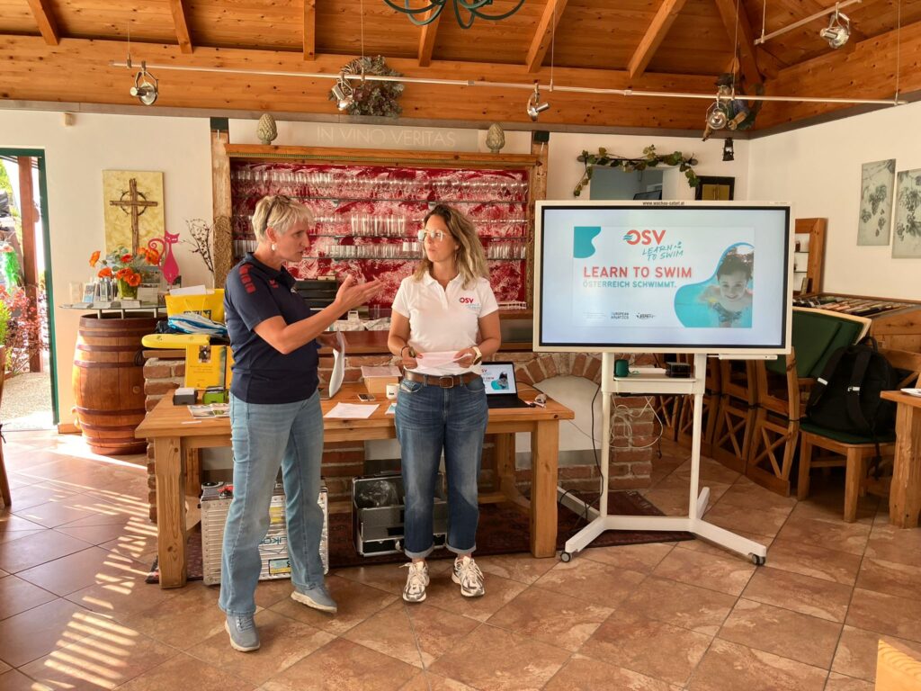 Nach einem herzlichen Meet and Greet präsentierte Herr Gusztav Kovacs, Ausbildungsreferent der „NÖ Schwimm Kids“, neue Lehrvideos, die künftig als praxisnahe Unterstützung für Trainer:innen dienen sollen. Die anschließende Vorstellung des NÖ Wasserflächenplans sowie des OSV-Projekts „Learn to swim“ durch Frau Alexandra Lehnsteiner bot wertvolle Einblicke in die strategische Weiterentwicklung der Infrastruktur und Ausbildungsmöglichkeiten.