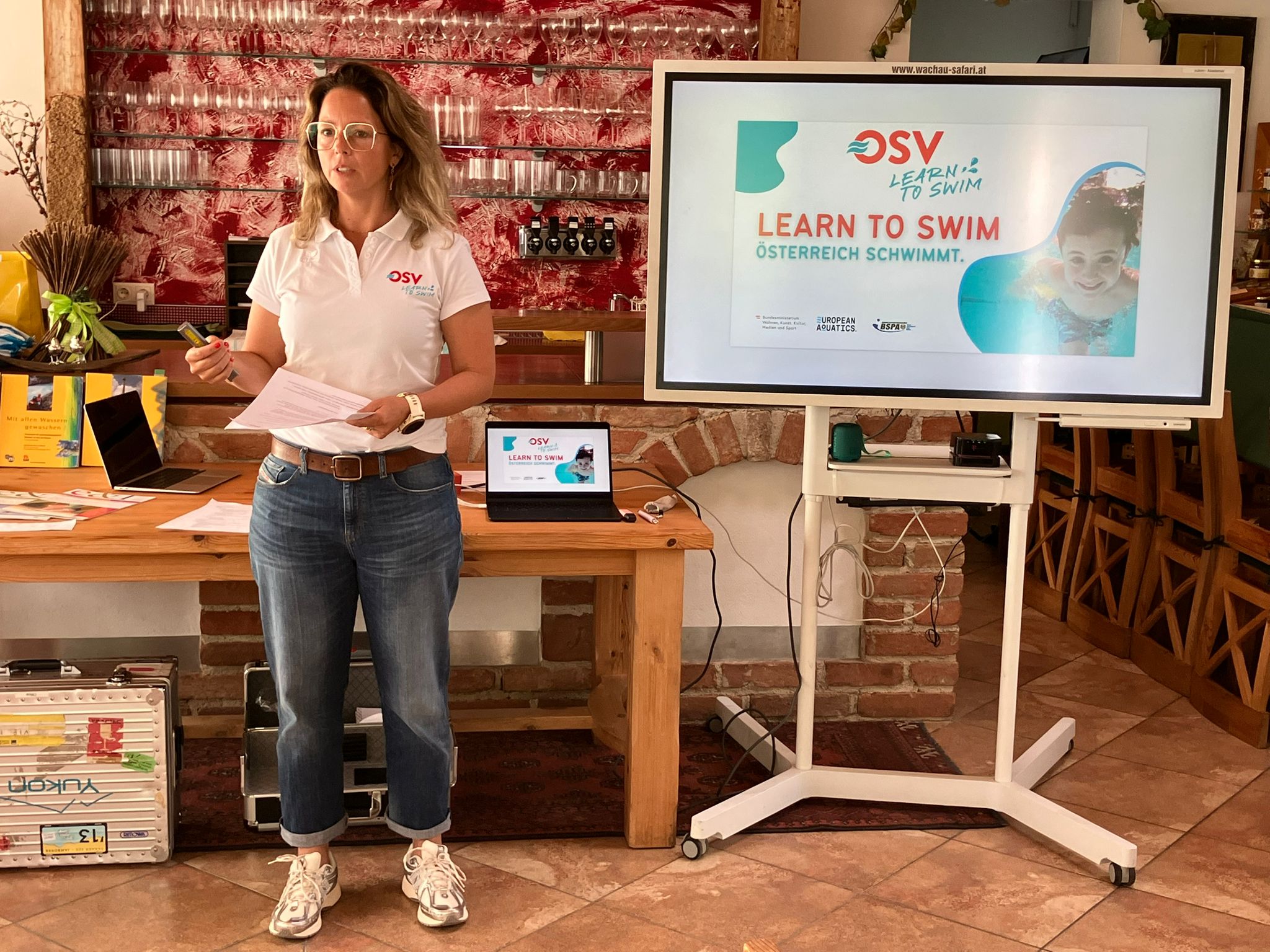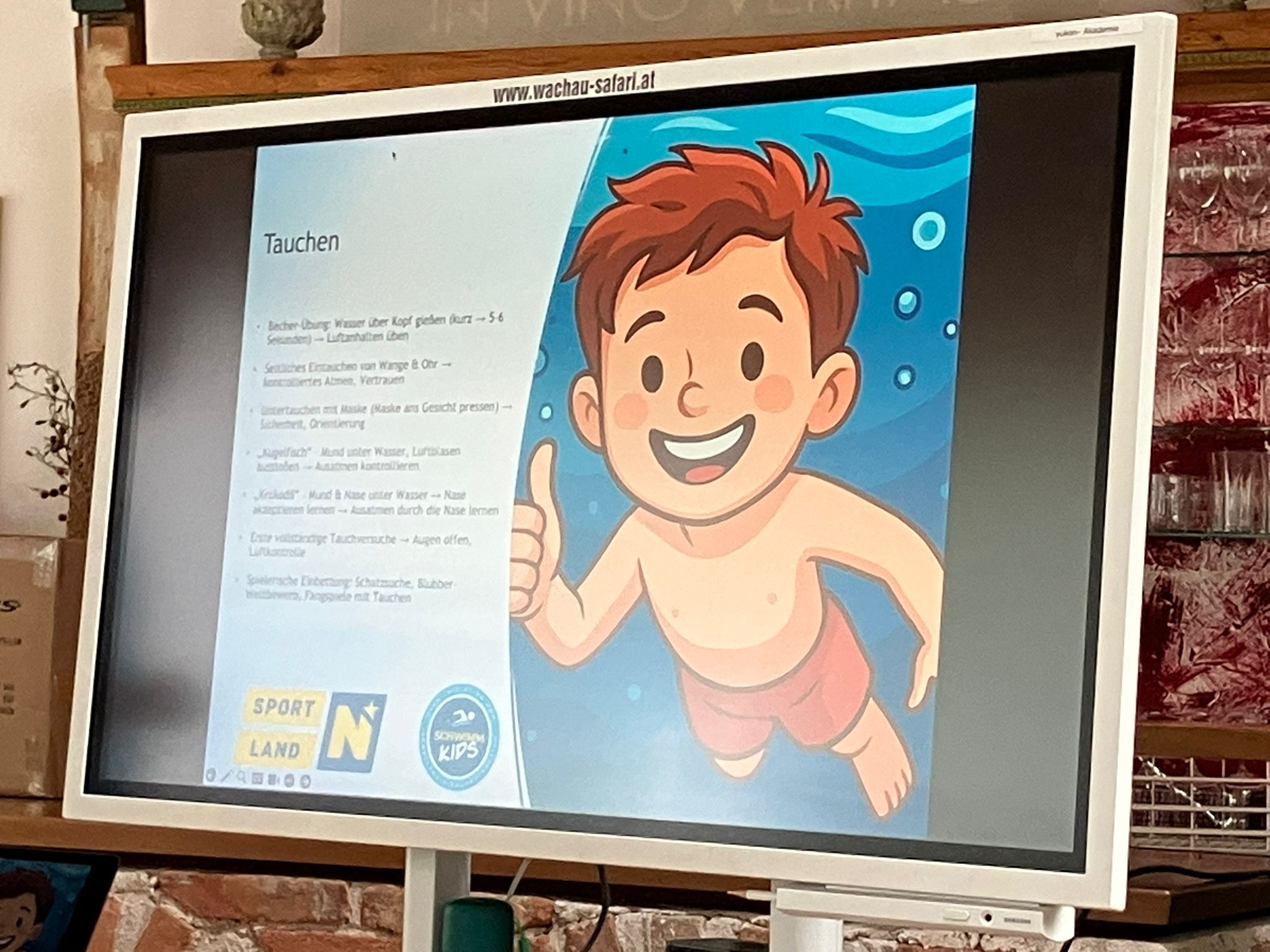 Nach einem herzlichen Meet and Greet präsentierte Herr Gusztav Kovacs, Ausbildungsreferent der „NÖ Schwimm Kids“, neue Lehrvideos, die künftig als praxisnahe Unterstützung für Trainer:innen dienen sollen. Die anschließende Vorstellung des NÖ Wasserflächenplans sowie des OSV-Projekts „Learn to swim“ durch Frau Alexandra Lehnsteiner bot wertvolle Einblicke in die strategische Weiterentwicklung der Infrastruktur und Ausbildungsmöglichkeiten.